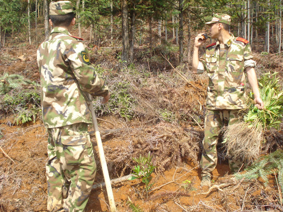 自去年3月8、9日及9月25日我场配合武夷街道办在下梅工区林地开展违规开垦茶山综合整治,拔除茶苗,并在造林地上营造阔叶树以来,今年在对上述山场进行回查时,发现当时营造的阔叶树被一些村民破坏,成活率比较低。为巩固专项整治成果,尽快恢复森林植被,在3月12日"植树节"来临之际,我场于3月5、6日组织60余人与武夷山森林武警大队组织的20余名官兵,在拔除的茶苗迹地上共同营造阔叶树等树种约300亩,达到森林生态修复之目的。